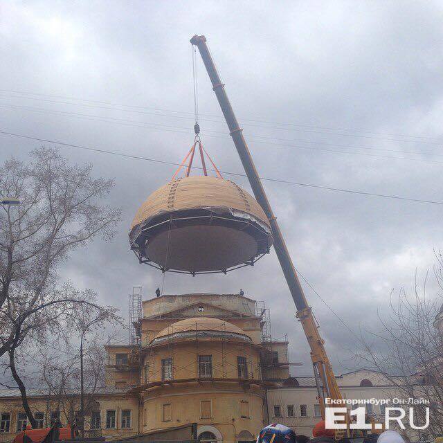 Пока что массивный объект обшит деревянными досками. ![]() В Екатеринбурге началась установка огромного купола на Ново-Тихвинском монастыре, который расположен около Зелёной рощи на улице Декабристов. Монтаж огромной конструкции только что закончился при помощи крана. Купол был установлен на известном церковном здании с верхушкой, напоминающей сейчас шахматную ладью. – Его уже поставили, пока что он будет обшит досками. О подробностях мы сообщим чуть позже, – пояснили в пресс-службе Ново-Тихвинского монастыря. О том, что купол должен вернуться на своё законное место, было известно ещё в марте: в Епархии обещали его водрузить до Пасхи, но получилось чуть позже. – После подъёма будет наноситься медное покрытие. Он будет выглядеть так же, как и остальные восстановленные купола рядом, сначала у него будет медный блеск, а через 7–8 лет произойдёт окисление, и цвет сменится на чёрно-коричневый. Куполов там два – большой и малый, половинный, он уже готов к установке, будет смонтирован на переднюю часть здания, – говорили ещё в марте строители объекта. Напомним, в августе прошлого года началась реконструкция одной из главных церквей Ново-Тихвинского монастыря – Церкви Введения во храм Пресвятой Богородицы. Это средняя из трёх церквей фасадной группы монастыря, некогда венчавшая собой Александровский проспект, ныне улицу Декабристов. источник -------------------- |