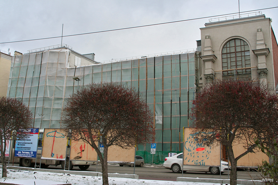 Ремонт филармонии. А что там ремонтировать? Там же фасад был в отличном состоянии. Понадобилось срочно деньги освоить? Уже были примеры, когда недавно покрашенный дом перекрашивали по новой, хотя краска ещё не облезла. Тут, видимо, такой же случай. Кстати, а пристроенную к филармонии шаурмяшную убрали? |