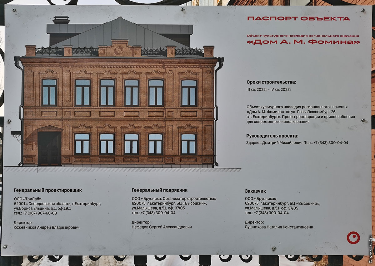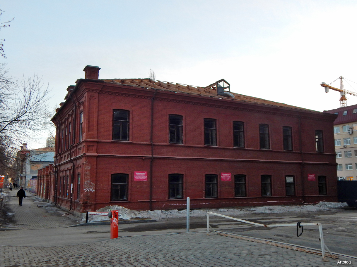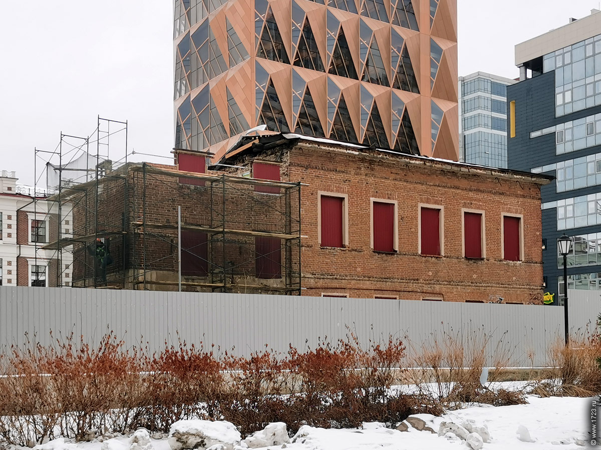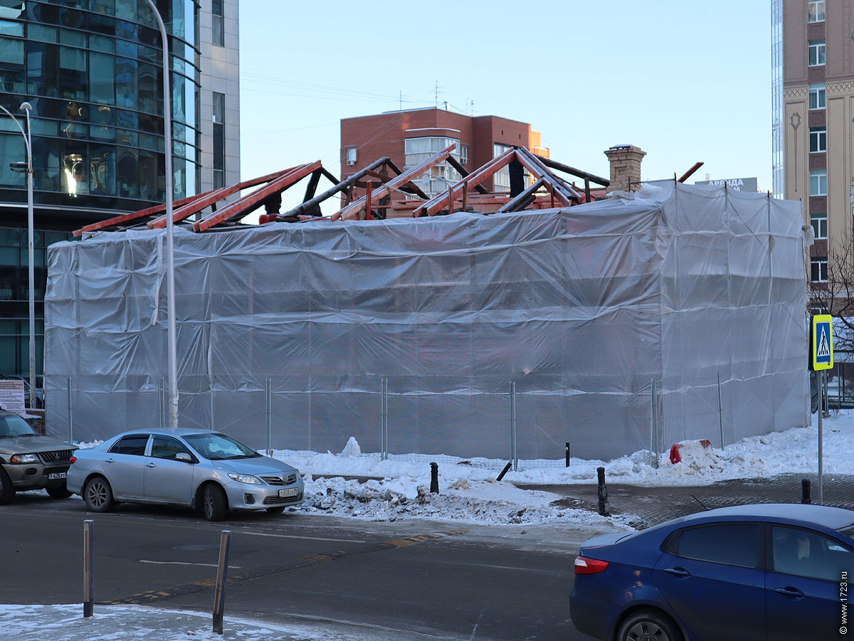 Реставрация-реконструкция объекта культурного наследия регионального значения «Склад», входящего в состав ОКН регионального значения «Усадьба купца С. Е. Тупикова». Пр. Ленина, 29б. Что-то фасад явно не соответствует рендеру. Нет украшений, форма оконных проёмов совершенно другая. Чтобы сделать, как по проекту, нужно разбирать весь фасад, но этим, похоже, заниматься не будут. |