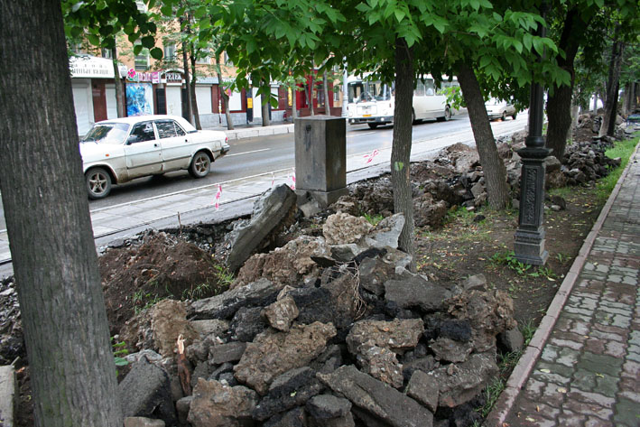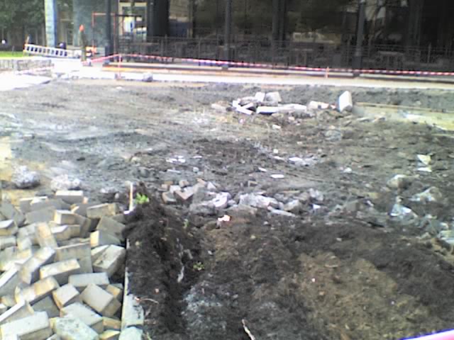 (про найденные захоронения постим здесь ) ![]() В районе перекрёстка Ленина-Вайнера хорошо видны расновременные слои. На брусчатке два слоя асфальта. ![]() А на самой площади окончательно наметился тротуар. Была площадь, а получается дорога+тротуар+остатки площади. Спорное решение. Я не удивлюсь что вдоль тротуара ещё поставят ограждение. ![]() ![]() |