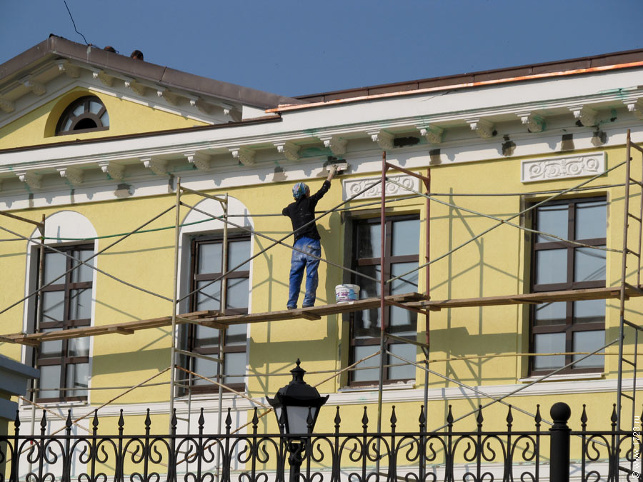 Продолжается ремонт в 56 доме на Октябрьской революции. Фасад теперь в новой цветовой гамме.