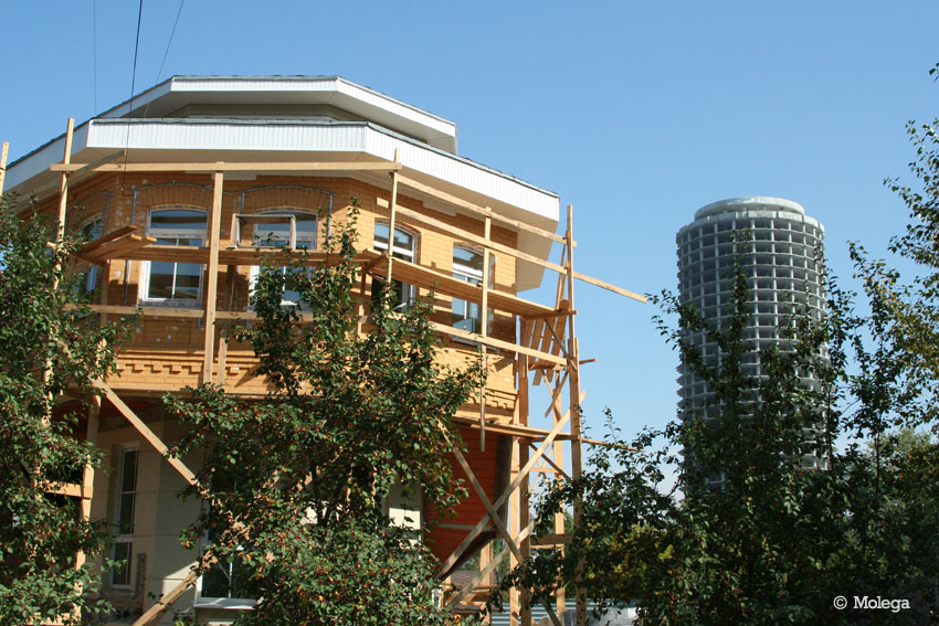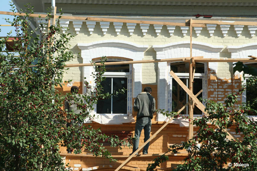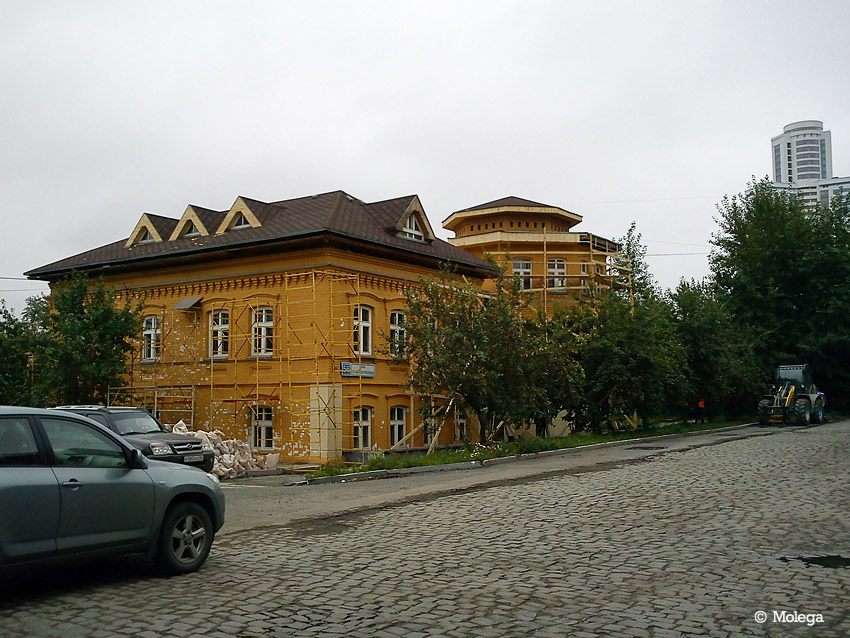 На территории резиденции полпреда ремонтируют новодел, который был построен вместе с резиденцией и отдалённо напоминает снесённый в этом районе Рязановский дом.
