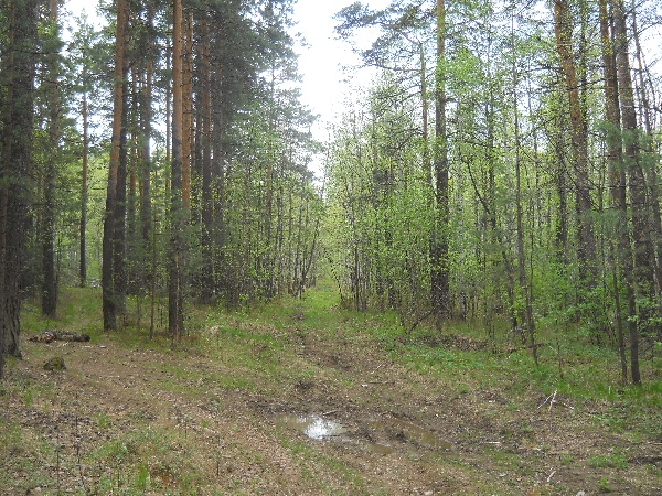 Потом ищем на окраине посёлка просеку север-юг и идём в южном направлении