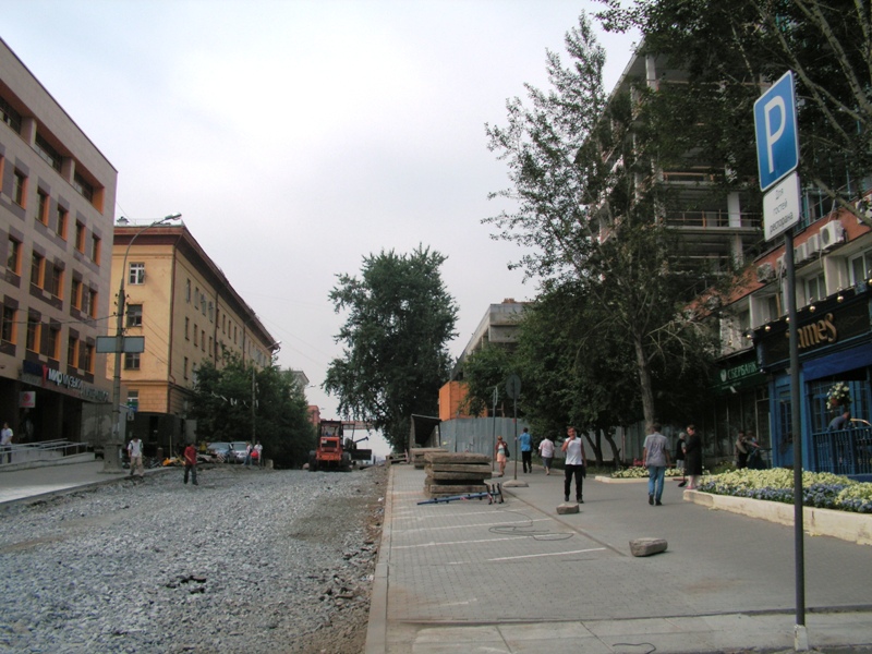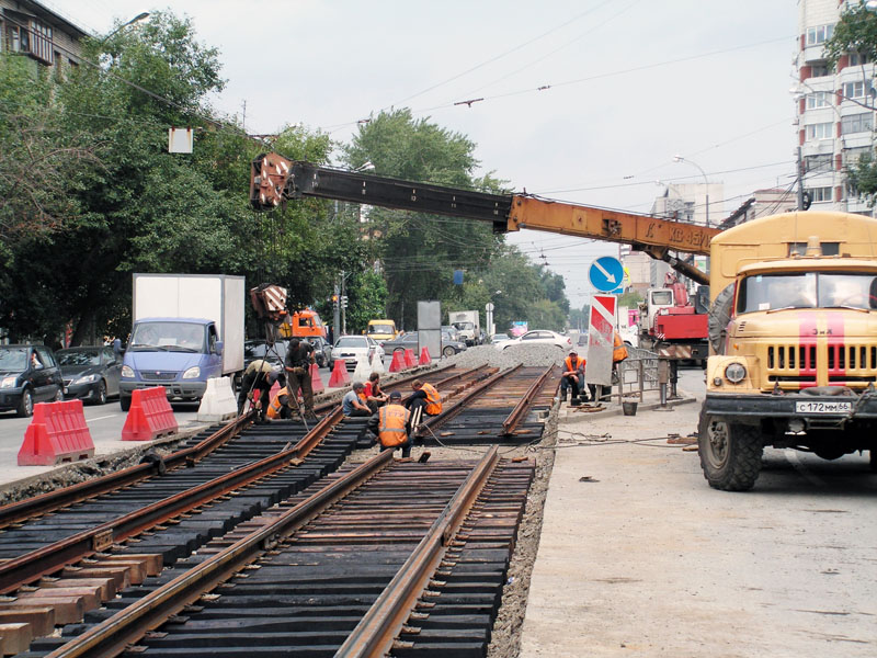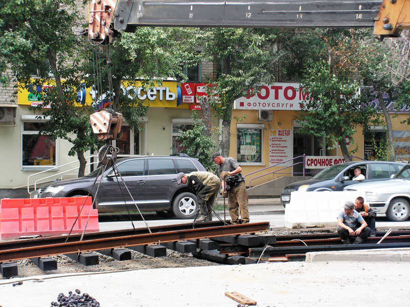 По Луначарского довольно протяженный участок трамвайных рельс меняют. Это радует.