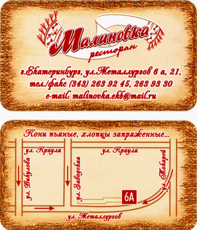 Ресторан "Малиновка", ул.Металлургов, 6а.
