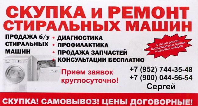 Визитка "г.Екатеринбург. Скупка и ремонт стиральных машин"