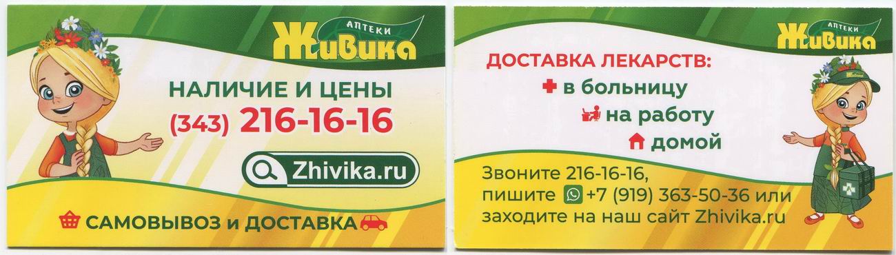 Визитка "г.Екатеринбург. Сеть аптек «Живика»"