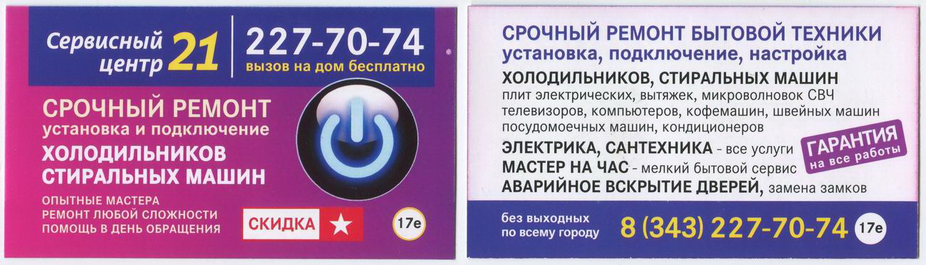 Визитка "г.Екатеринбург. Сервисный центр 21"