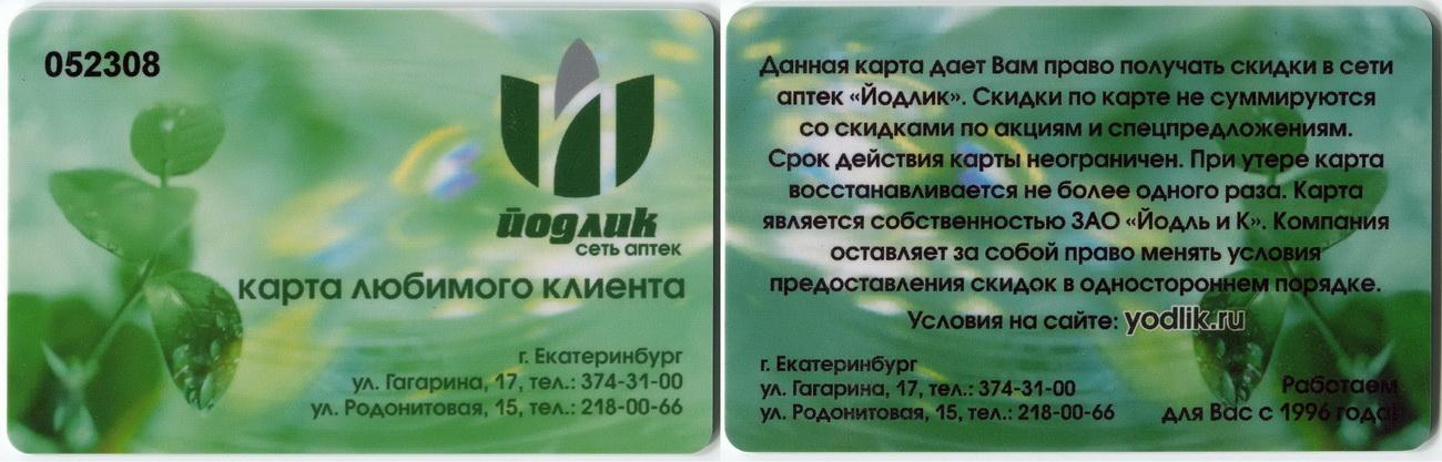Дисконтная карта "г.Екатеринбург. Аптечная сеть «Йодлик»"