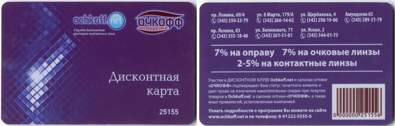 Дисконтная карта "г.Екатеринбург. Салоны оптики «Очкофф»"