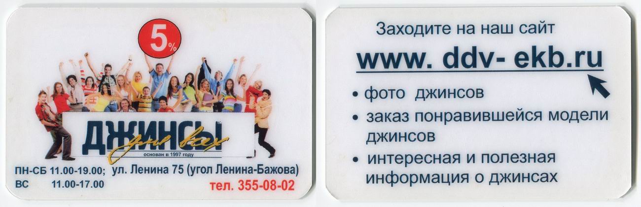 Дисконтная карта "г.Екатеринбург. Магазин «Джинсы для всех»"