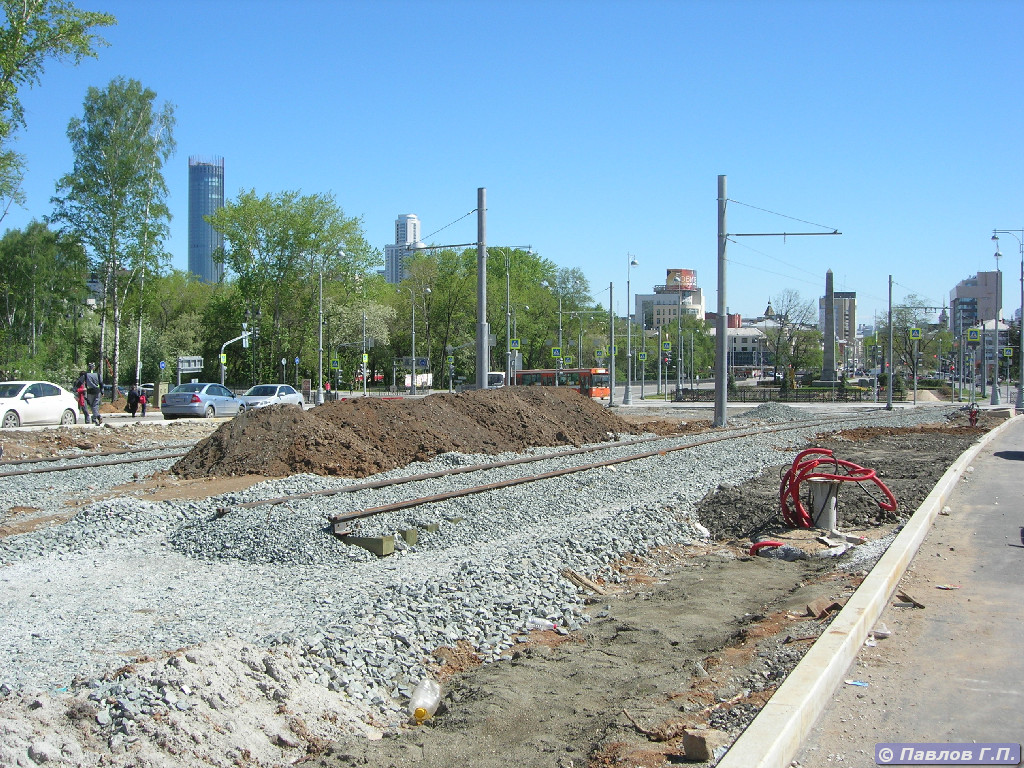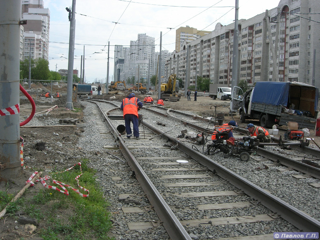 На углу Татищева и Красноуральской заканчиваются работы по стыковке трамвайных путей