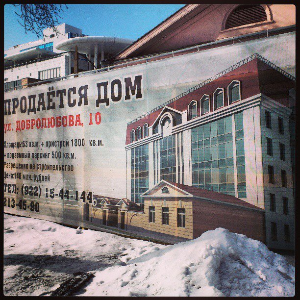 Деревянный забор с плакатом-картинкой "Дом продаётся" ??? На картинке в глубине усадьбы - 5-этажный стеклянный офисник с мансардой. Правда, спереди всё же присутствуют ворота с портиками... Видимо снесли "временно", чтобы не мешали строительству... ![]() Чтоб им пусто было!.. ![]() -------------------- |