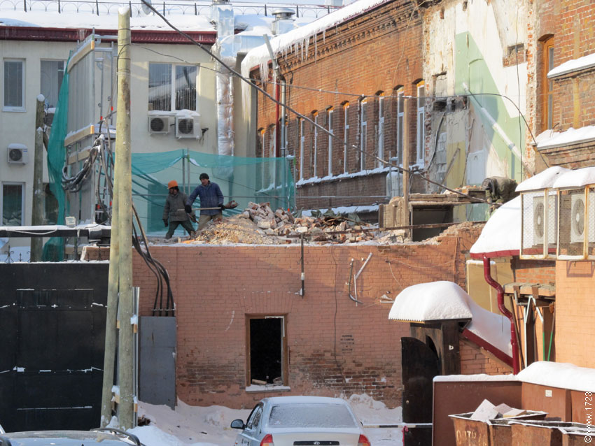 Ломают дворовую часть дома по ул.Малышева, 58-60. Это Малышева, 56 здание под охраной Здание было сооружено в 1882 г., точнее, первоначально их было два, потом - в 1884 г., появилась вставка, соединяющая их, и пристрой, который сегодня сносят Видимо, манкурты этим воспользовались, мол, это пристрой, - можно сносить суки |