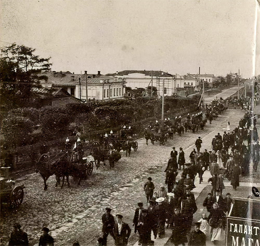 Парад Екатеринбургских пожарных на Вознесенском проспекте (улица Карла Либкнехта).