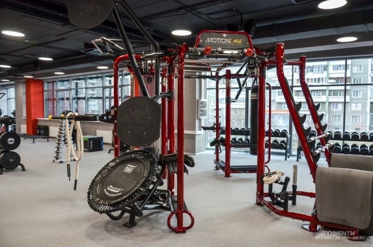 На первом этаже располагаются зоны ресепшена, гардероба и спортивного бара, а также тренажерный зал, оборудованный современным спортивным инвентарем.