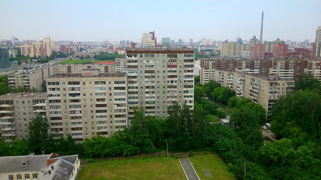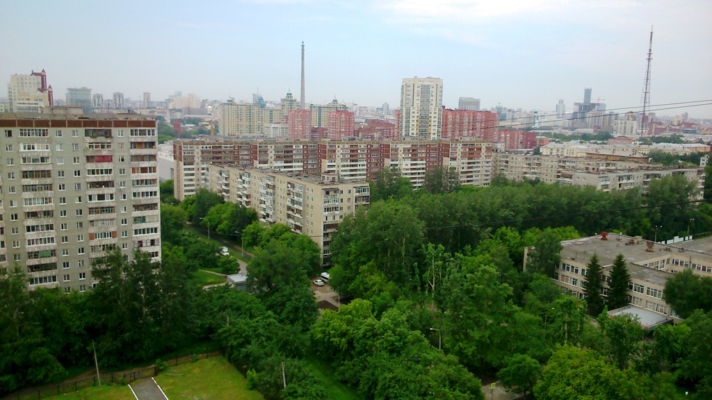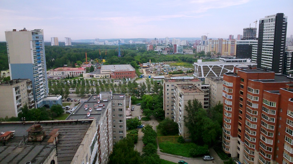 Вид на Екатеринбург с восемнадцатого этажа Радищева 61. Хотели подняться в соседнем подъезде на двадцать пятый, но бдительный консъерж пресёк проникновение незнакомых лиц в лифт.