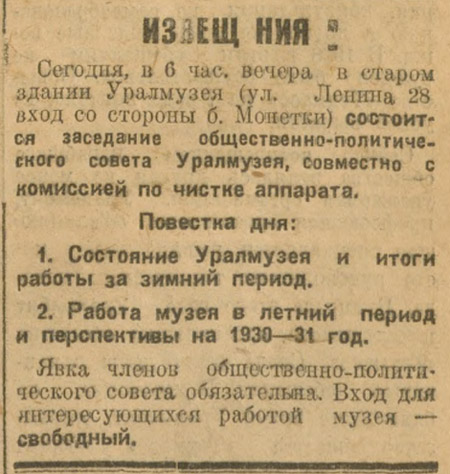 Музей кукол и Литературная жизнь Урала XX века переехали на пр. Ленина, 52. Музей Литературная жизнь Урала XIX века — в музей Мамина-Сибиряка. -------------------- |