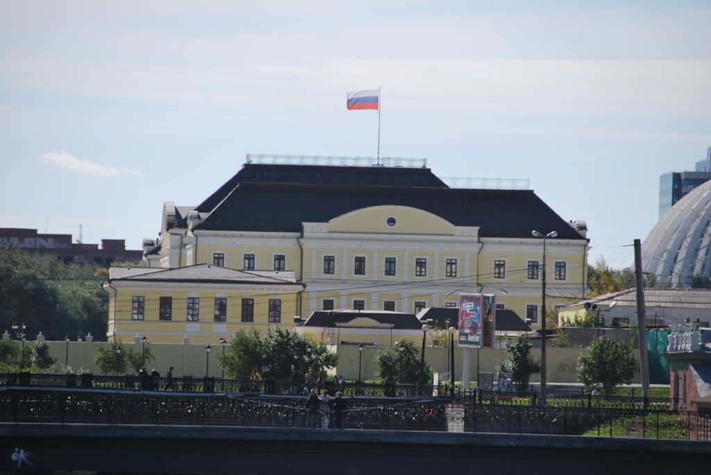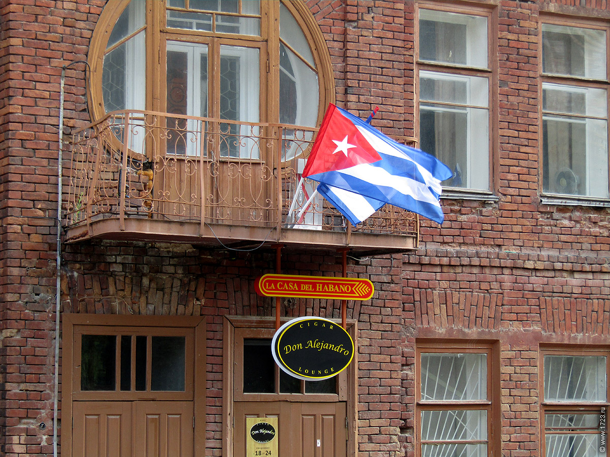 Стали использовать старый флагшток, на фасаде Розы Люксембург, 34.