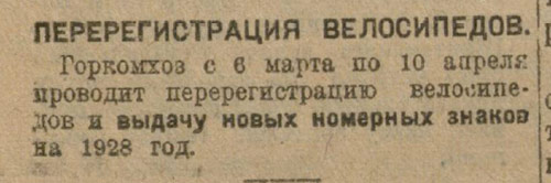Перерегистрация велосипедов.