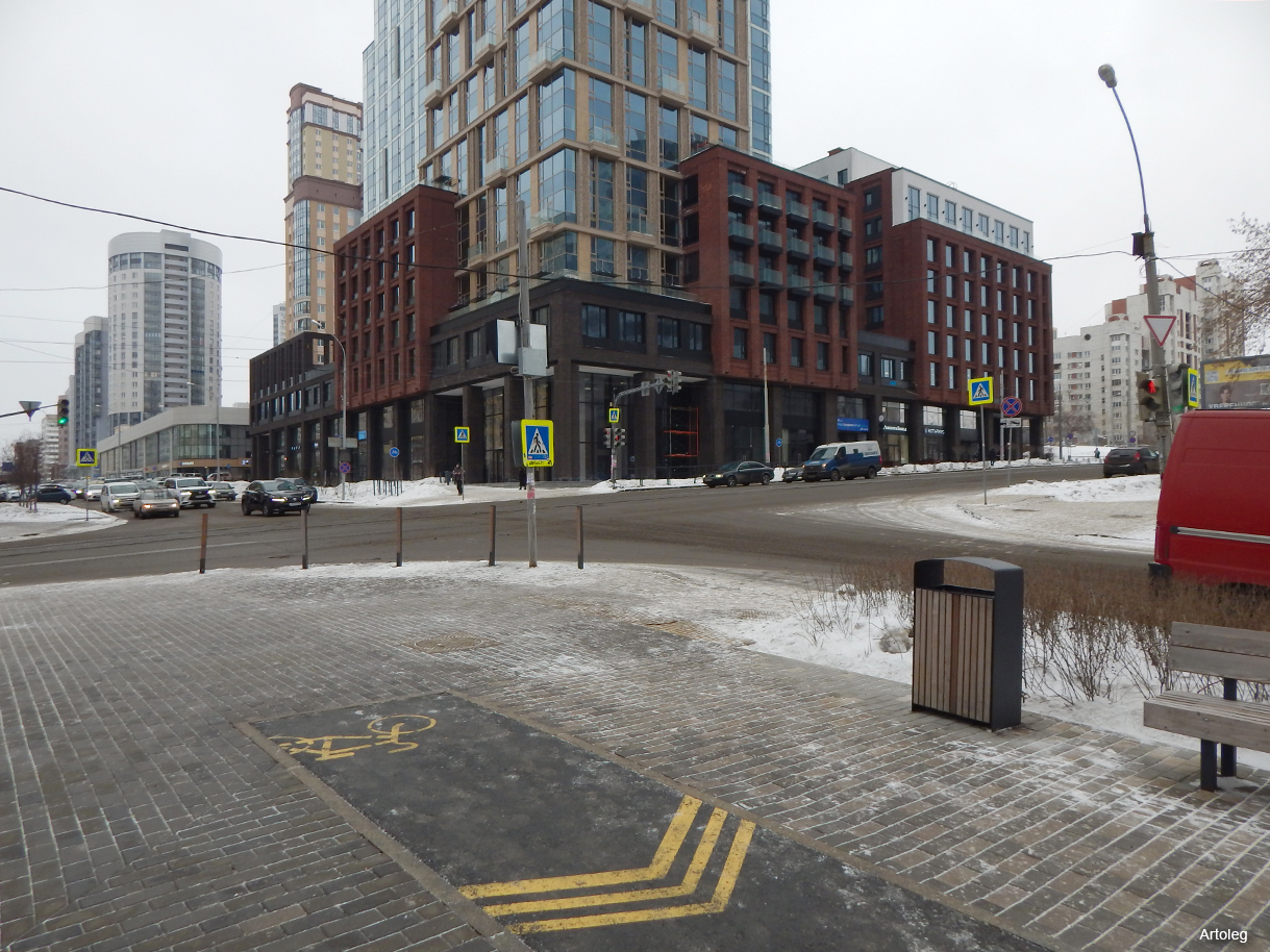 Новая велодорожка на ул. Шейнкмана возле ТЖК "Форум Сити".