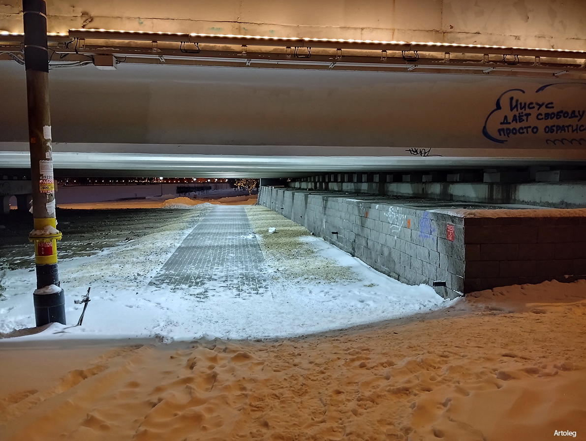 Набережная Рабочей молодежи. Сделали подсветку вело-пешеходной дорожки под Макаровским мостом. ![]() -------------------- |