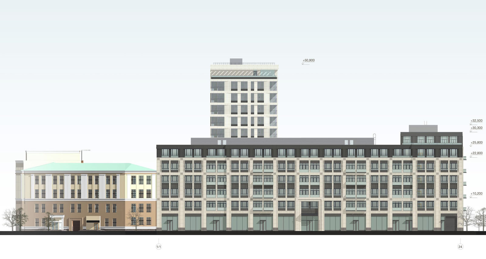 Проект реконструкции фасадов торгового центра "Sila Voli", ул.Карла Либкнехта, 23б / Толмачёва, 22.