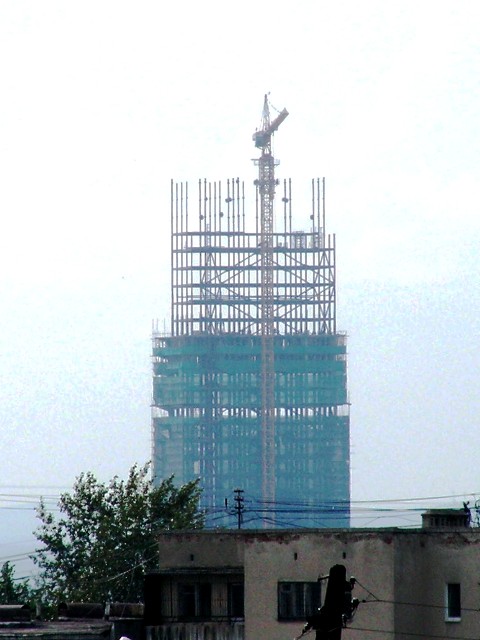 Сегодня замечено движение на стройке, работал кран и было видно рабочих.