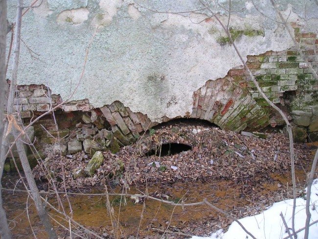 Что говорит о том что этот пристрой старинный?Старинные кирпичи, фундамент сделанный из бутового камня и выложеннная кирпичами арка в фундаменте.В этой арке проходила труба отводившаяся от от большой здоровенной трубы от плотины.Трубу эту мы видим опять же на фото Вика и других фото.