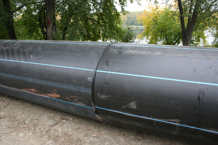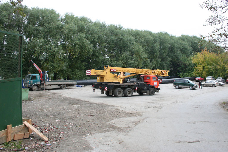 В районе набережной Рабочей молодежи- Энергостроителей собирают трубопровод...