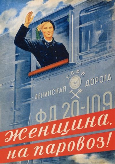 Помощник машиниста депо Свердловск-пасс. А.Чижова на паровозе