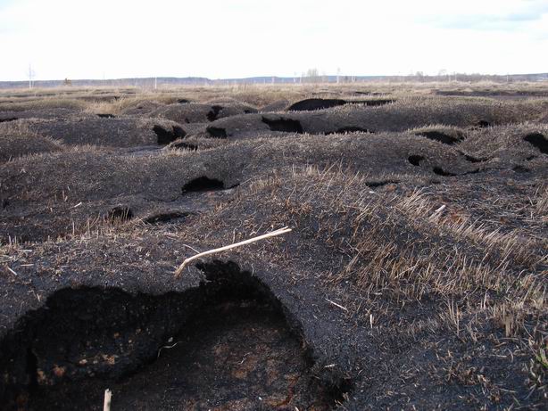 Зато там же мы нашли горелый торфяник. Посмотрите, как его вспучило!