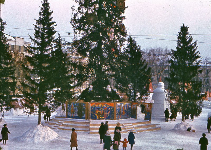 Новогодняя елка на площади Первой пятилетки.