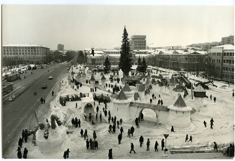 Вот такая фигура Деда Мороза стояла в ледовом городке на площади 1905 года в первой половине 1980-х. Автор фото — Евгений Клавдиенко.