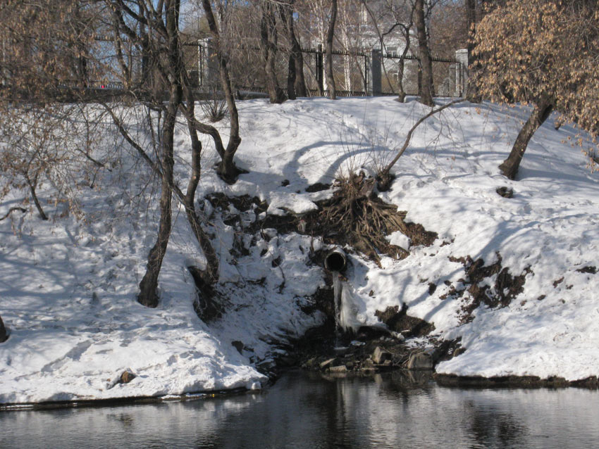 Возможно это часть Малаховки...? Учитывая направление основной трубы. Вообще судить о том, что льется из труб по берегам Исети по-дилетански достаточно сложно. Для этого надо минимум иметь схемы подземных коммуникаций. Можно лишь предположить несколько вариантов, что это: - упрятанные под землю реки, ручьи, ключи и т.п.; - очищенные производственные сточные воды; - ливневая канализация; - совокупность всех выше перечисленных. Вероятно, что полной и достоверной информацией могут владеть городские коммунальщики или компитентные органы по охране и использованию водных объектов (у них есть схемы выпусков стоков в водоемы). Напротив Цирка (на левом берегу в районе продолжения ул. Народной Воли). ![]() ![]() ![]() -------------------- |