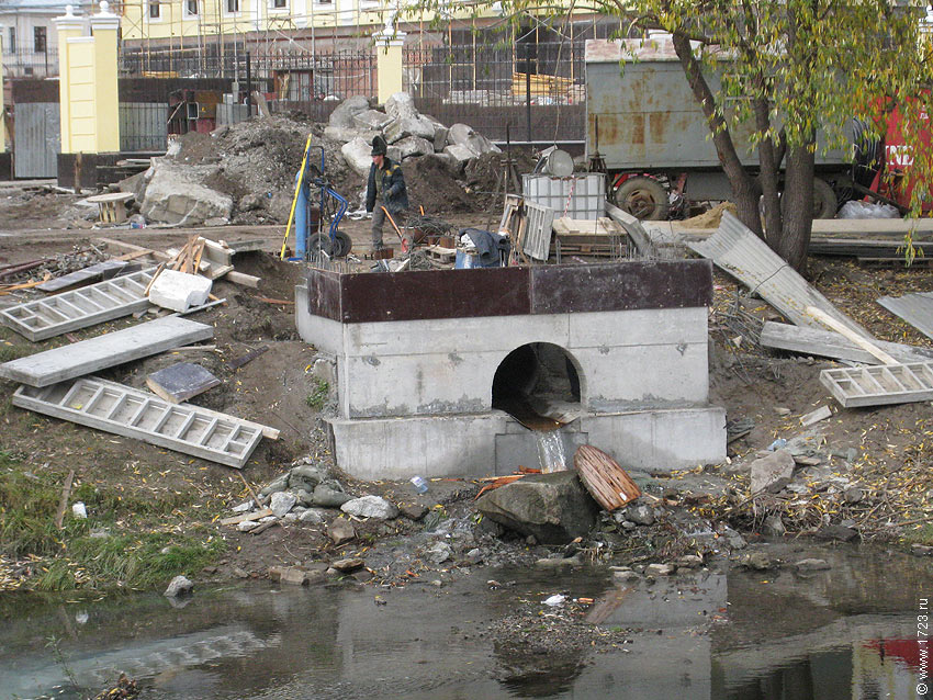 Напротив Цирка (на левом берегу в районе продолжения ул. Народной Воли). Недалеко от этого водостока на противоположном берегу есть еще одна труба. ![]() ![]() -------------------- |