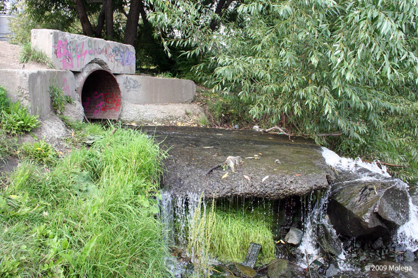 Впадает в Исеть на территории южной части дендропарка, у моста по ул.Куйбышева. Видно что ручей основательно размыл крутой берег. Вода из трубы течет с виду чистая и без запаха. ![]() ![]() ![]() ![]() Но бывают дни когда вода вытекает совсем грязная. |