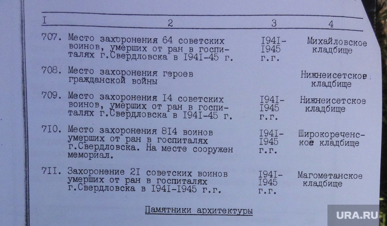Тайна Широкореченского мемориала воинам: «Ложь, позор и показуха» ![]() Михайловскому кладбищу повезло: здесь не только сохранили воинские захоронения, но и поставили памятник. Судьба других братских могил и памятников печальна В Екатеринбурге сравняли с землей братские могилы солдат Великой Отечественной войны, и сегодня мы ходим по костям. В это трудно поверить, но на останках защитников Отечества — свежие захоронения и заросший крапивой пустырь. «URA.Ru» стали известны все подробности позорной истории, за которую не может не быть стыдно. Вопрос — как с этим жить дальше? «Бомба» федерального значения На тему воинских захоронений я наткнулся, когда готовил материал о разрушенных памятниках войны. «Все плохо с монументами? Вы не представляете, насколько! — ответил мне по телефону один из экспертов. — Приезжайте, я расскажу». ![]() Вадим Шипицин уже много лет занимается темой воинских захоронений на Урале С Вадимом Шипициным, который серьезно занимается темой воинских захоронений на Урале, мы встречаемся возле мемориального комплекса «Журавли» — перед входом на выставку-музей военной техники в Верхней Пышме (Вадим работает здесь заместителем директора). В Свердловской области этот музей — образцово-показательный пример и отношения к памятникам, и того, как сохраняется память о Великой Отечественной войне. Но не всем монументам так везет. Вадим рассказывает мне историю перезахоронения воинских останков на Широкореченском мемориале. От услышанного волосы встают дыбом. «В Свердловске было несколько захоронений военнослужащих, умерших в госпиталях во время Великой Отечественной войны, — говорит Шипицин. — Самое крупное было на Широкореченском кладбище. В 1975 году там открыли мемориал, и в 1981 было решено перенести туда останки военнослужащих с Михайловского, Лютеранского, Нижне-Исетского и Татаро-башкирского кладбищ. На каждое кладбище привезли по одному деревянному гробу, копнули экскаватором немного земли, положили в гробы и заколотили. 4 июня 1981 году привезли все это на Широкореченское кладбище — там уже были приготовлены погребальные ямы. После этого памятники на тех четырех кладбищах постепенно демонтировали, а кости там и остались под землей». — Как вы об этом узнали? — От Анатолия Абрамовича Войтенко — он работал в министерстве культуры, занимался темой памятников, посвященных Великой Отечественной войне. Я изучил реестр этих памятников и решил удостовериться, соответствует ли бумажная информация действительности. Дошел ногами до каждого места и не нашел там тех памятников. Разговаривал со старожилами, изучал архивы, встречался с ветеранами. Мне все равно не верится — тогда Вадим достает исторические документы: приказ начальника штаба Уральского военного округа (о выделении почетного караула и автомобилей), сценарий проведения перезахоронения останков и главный документ — решение свердловского горисполкома от 22.04.1981 г. о проведении перезахоронения. Вот строки официальных документов: «Загрузить останки воинов, умерших в госпиталях города Свердловска, в специально подготовленные гробы из расчета по одному гробу на каждое кладбище», — говорится в сценарии торжественной церемонии. «Там были останки десятков людей, представляете? Всех их положить в один гроб просто нереально!» — говорит Шипицин. ![]() Решение 