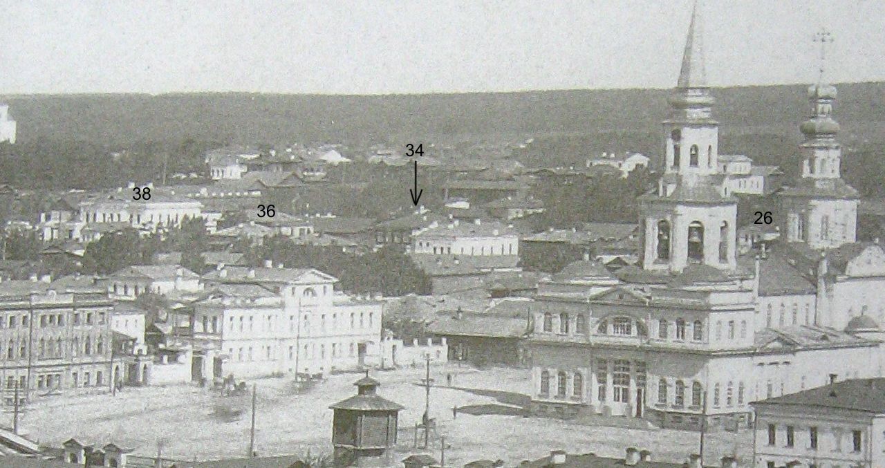 К сожалению, это дом 34. Причём высокий. Крышей вровень с Метенковским. По описанию Симанова полукаменный двухэтажный. Как далеко он стоял от Метенковского можно только догадываться. Смотрите сравнение выше: http://1723.ru/forums/index.php?s=&sho...ost&p=37098 Хотя, всё упирается в низкое качество фотографий. В сравнении тоже есть вопросы по высоте домов. А эта фотография конца 19 века. Художественно-промышленной школы, открытой в 1902 г. ещё нет. Можно представить себе какого качества фотографиями мы пользуемся: Вот фотография ![]() А это её фрагмент ![]() Женская гимназия и дом Метенкова...???? Я что-то не пойму. Прикрепленные изображения