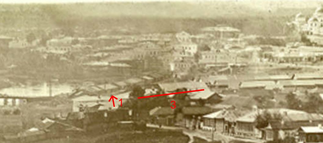 Угол между направлением на крест Нагорной церкви к направлению на север 105,43 градуса. Расстояние 3080,5 метра. В качестве опоры для расчета взята текущая геосъемка города, с наложением на нее старых источников. На геосъемке также присутствуют красные линии улиц К.Либкнехта и К.Цеткин. Судя по переломам северной красной линии ул. К.Цеткин, она повторяет линию застройки, снесенной большевиками. Восстановить на съемке положение дома Ипатьевых не сложно. Данных для этого предостаточно. Съемка ![]() Соединяем отрезком Вознесенскую церковь... ![]() с крестом Нагорной церкви ![]() Получаем вот такую связочку ![]() Смотрим, где же проходит наша линия в районе храма Подкладываем на это место план усадьбы, заранее отмасштабированный и сориентированный Рассматриваем полученный результат И обсуждаем. |