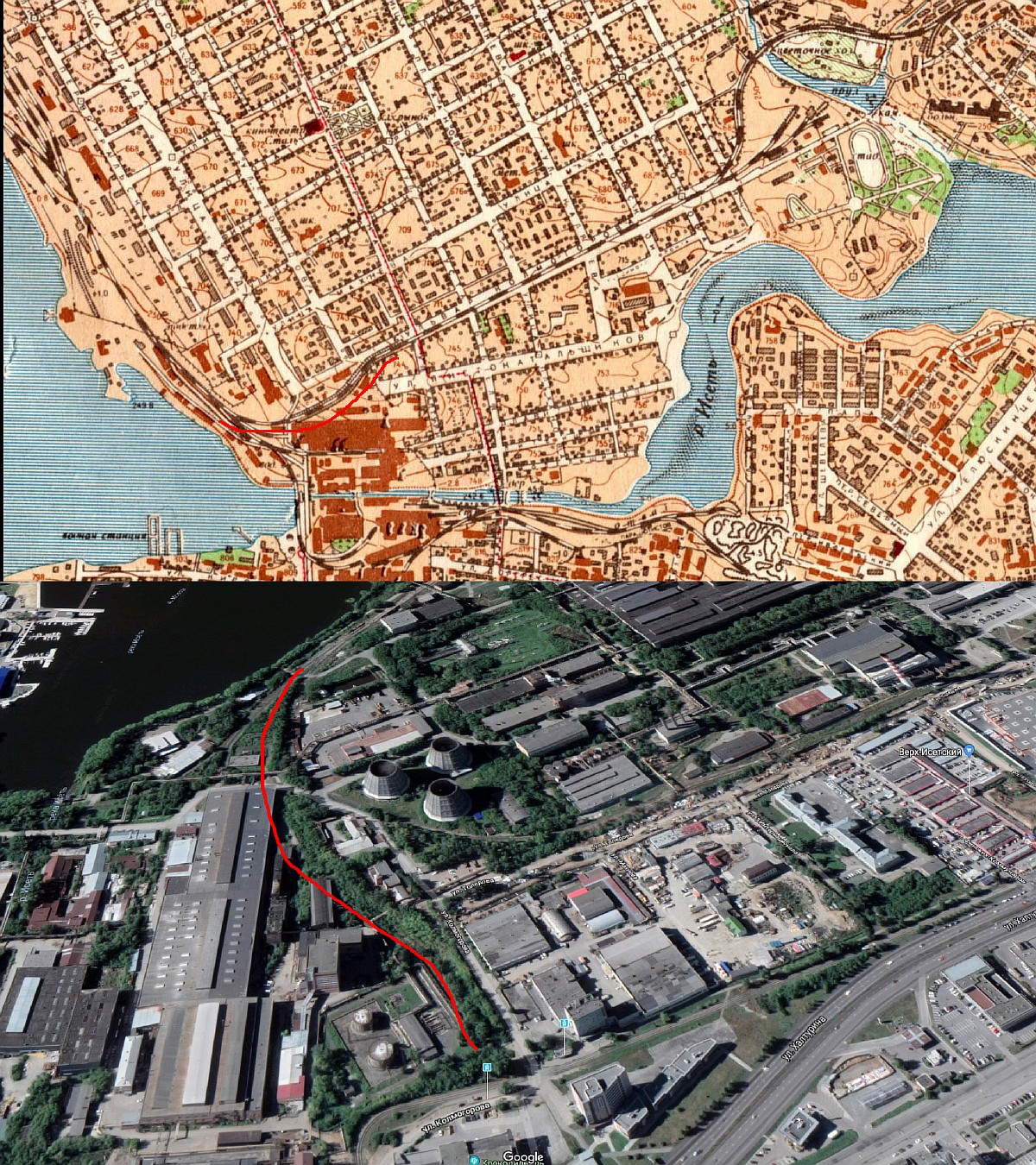 Я так понимаю, это где-то на оси современной улицы Колмогорова? Подписано как Верх-Исетский завод. Подъездной заводской путь со станции Екатеринбург в Верх-Исетском заводе. Начало XX века Госкаталог А ведь точно! Сама улица Колмогорова поднимается в горку, ко 2й проходной ВИЗа..а рядом та самая выемка под ж.д. ветку, которую можно разглядеть с гугл карт только благодаря обильной растительности на месте полотна. Саму ветку видно на карте Свердловска за 1958 год. ![]() |
