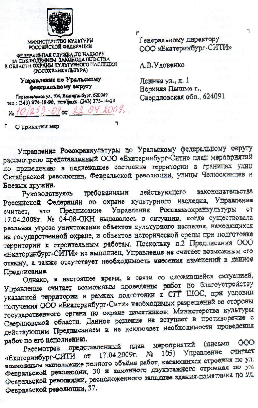 В 2009-м нам удалось остановить экскаваторы во многом благодаря вот этому письму Росохранкультуры. ![]() ![]() ![]() Если Вы готовы спасать здания №№ 32, 34, 38, 44, то Вам как минимум нужно распечатеть это письмо и дежурить с ним в новогодние праздники. Для координации дежурстваи обмена информацией есть специальная группа: https://www.facebook.com/groups/rospamjatnik/ Требования предписания, на которое есть ссылка в письме, не сняты. Ну, а мы постараемся за оставшееся время хоть как-то минимизировать угрозу сноса. Пишите и вы: в полицию, прокуратуру, МУГИСО. Источник -------------------- |