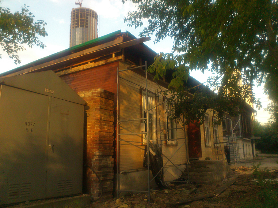 Октябрьской революции, 52. Продолжается реконструкция флигеля усадьбы Антипина. Фото 18.07.2014 Радует, что кровля стала зеленым цветом... ![]() ![]() Заглядывал во внутрь дома - планировку, вроде, сохранили идентично старой. Но, сохранились ли старые печи, неизвестно. Фото 10.08.2014 Фасад стали обшивать новыми досками. Оставят так?.. ![]() Но когда увидел, что обшивку тонируют коричневым цветом, вздохнул с облегчением. Красиво. ![]() Еще фото -------------------- |