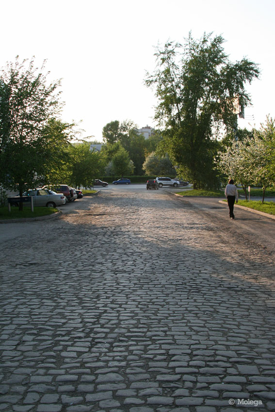 Гранитный тротуар наверняка сделали до революции, а по поводу брусчатки я всё-таки склоняюсь к тому, что улица была вымощена уже в советское время. Всё-таки в дореволюционном Екатеринбурге брусчатка была не на всех улицах, а только на главных, наиболее богатых. А подобной брусчаткой как на Октябрьской революции мостили улицы и на Уралмаше в 1930- годы, и в других местах. Хотя я могу ошибаться.