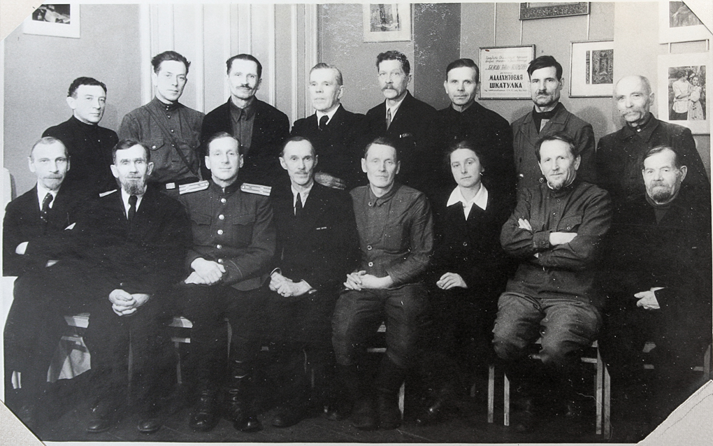 Одна из выставок в Свердловске, мой прадед Моисеев П.И. третий справа, думаю конец 40х.