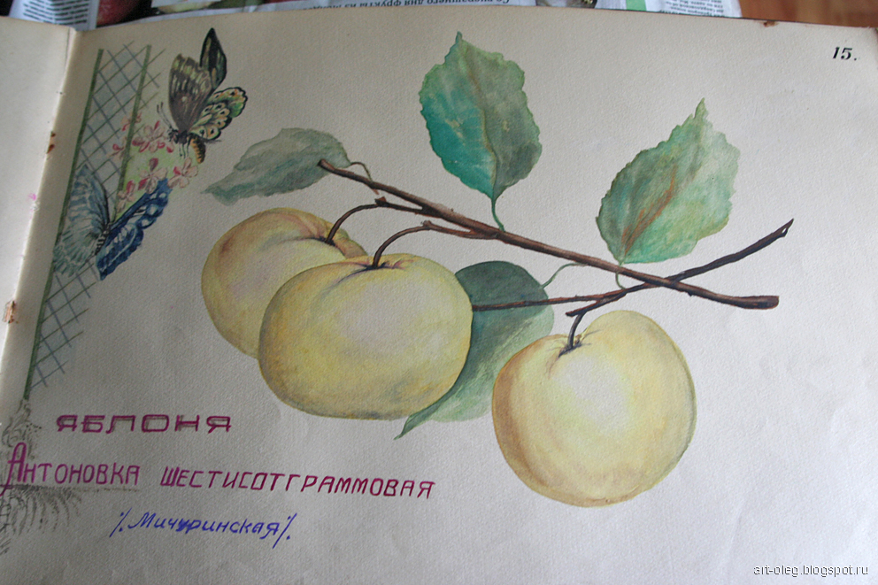 Г. Свердловск, ул. Октябрьской революции, д. № 32. В альбоме Вениамин Николаевич зарисовывал различные плодовые культуры в смешанной технике ― акварель с белилами и чернила. Надо заметить, рисовал он весьма прилично, видно, что человек был разносторонний и увлеченный своим делом... Обложка ![]() Яблоня Китайка сахарная. Стр. 5 ![]() Яблоня Ренет. Стр. 6 ![]() Яблоня Антоновка шестисотграммовая (Мичуринская). Стр. 15 ![]() Смотреть еще -------------------- |