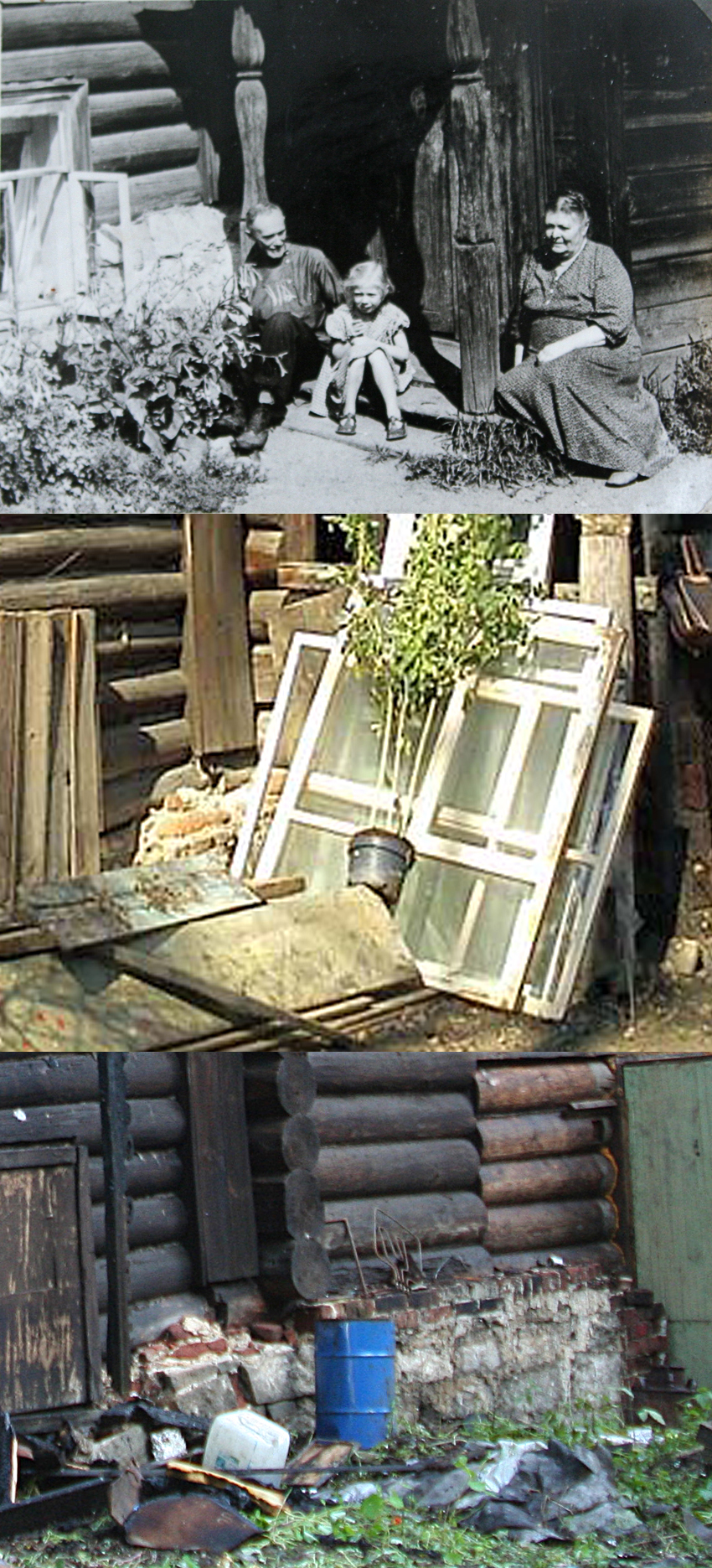 Нач.1950-х - В.Н. Ястребов у парадного крыльца своего дома с внучкой Татьяной и супругой. 2011 - От былой красоты не осталось и следа... 2014 - После пожара... ![]() -------------------- |