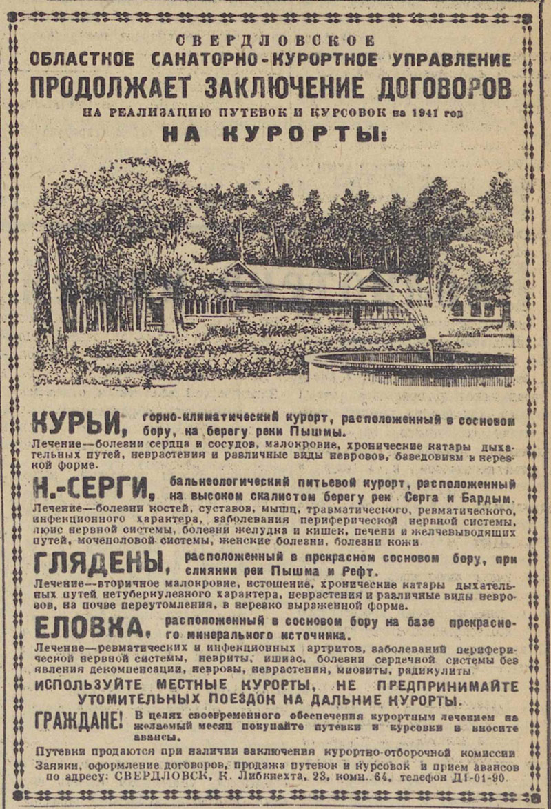 Красноуфимский район. Дом отдыха Сарана. "Уральский рабочий" 28 февраля 1941г. ![]() |