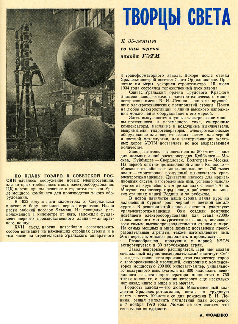 Цитата Слава заводским династиям Сегодня на Уральском заводе РТИ трудятся представители более 100 трудовых династий Причем, есть представители династий в третьем, четвертом и даже в пятом поколении. И это лишь один из немногих уникальных фактов, которые стали известны в ходе подготовки книги и фильма к юбилею предприятия. К сожалению, участниками фильма смогли стать не все ветераны и представители известных заводских династий, многие из них в силу возраста, по состоянию здоровья вынуждены были отказаться. Однако, бесценная информация о заводских трудовых династиях - не осталась «под сукном». Им посвящена отдельная большая глава в юбилейной книге. Новый фильм и книга о заводе станут частью общей памяти: об основании Уральского завода РТИ и его предшественниках в Москве и Ленинграде; об истории, полной важных событий, и о людях, которые составляли и составляют гордость и славу предприятия. Фотография из архива предприятия ![]() ссылка -------------------- |