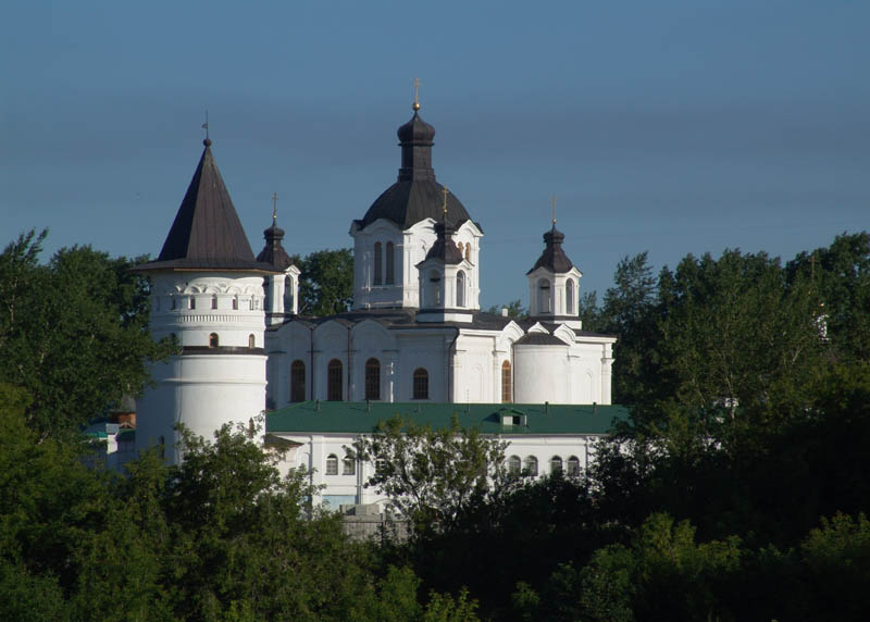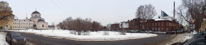 Вот снимок в прямо противоположном направлении, с севера на юг: Признаю свою ошибку )) Отзеркалил фотку ошибочно ) Все доказывает солнечный свет. На фотке осень или зима (листьев нет на деревьях). В это время года в наших широтах северный фасад здания даже самым ранним утром не может быть так обильно освещен солнцем... Соответственно, снято с юга на север вечером с территории монастыря. Александро-Невский собор должен быть слева и чуть дальше... |
